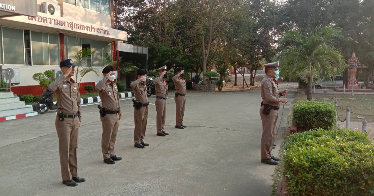 รอง สวป.ฯปฏิบัติหน้าที่ร้อยเวร 20 ได้เรียกแถวสายตรวจเคารพธงชาติ สวดมนต์ กล่าวอุดมคติ