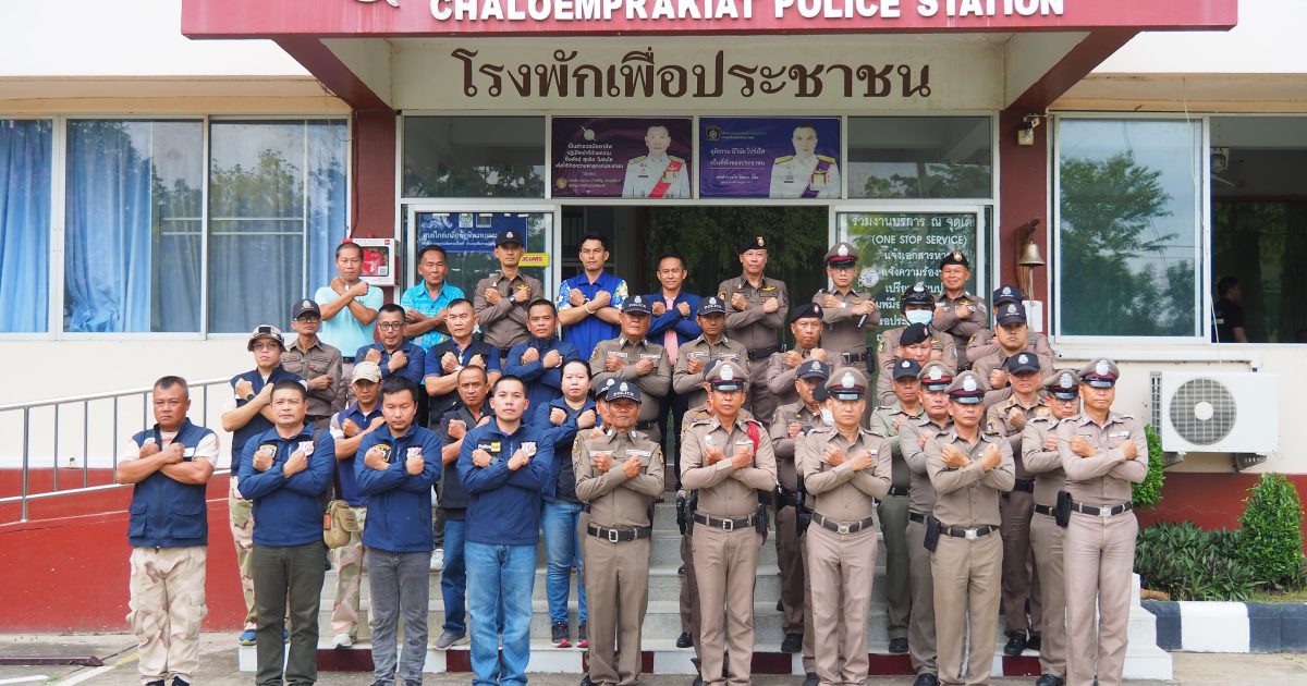 พ.ต.อ.บัณฑิต จาตุวัฒน์ ผกก.สภ.เฉลิมพระเกียรติ นำข้าราชการตำรวจในสังกัด คณะกรรมการ กต.ตร. ร่วมประกาศนโยบายการต่อต้านการรับสินบน ณ ลานด้านหน้า สภ.เฉลิมพระเกียรติ