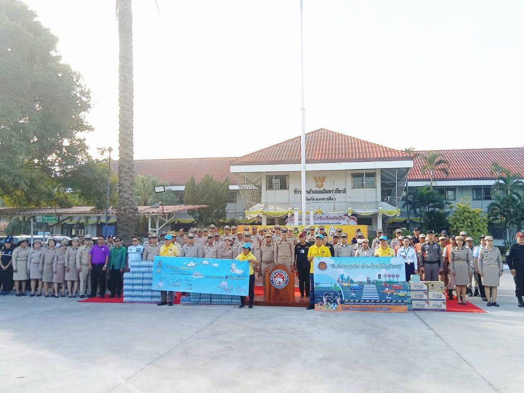 วันที่ 27ธ.ค.2567 ข้าราชตำรวจ/ชุดจิตอาสา สภ.เฉลิมพระเกียรติร่วมกับภาคีเครือข่ายข้าราชการฝ่ายปกครอง ปล่อยแถวเพื่อป้องกันอาชญากรรมลดอุบัติเหตุตามท้องถนน ที่หน้าว่าการอำเภอเฉลิมพระเกียรติ โดยมีนายไพรัตน์ อินทร์ปัญญา เป็นประธาน