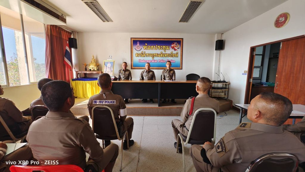 เมื่อวันที่ 11 มีนาคม 2568 เวลา 10.30 น. พ.ต.อ.บัณฑิต จาตุวัฒน์ ผกก.สภ.เฉลิมพระเกียรติ, พ.ต.ท.สุริยา ลากุล รอง ผกก.ป.สภ.เฉลิมพระเกียรติ, พ.ต.ท.สัญญา ด่านโคกสูง สวป.สภ.เฉลิมพระเกียรติ, ได้เรียกพนักงานสอบสวน เจ้าหน้าที่สายงานสอบสวน ธุรการคดี ประชุมเสริมสร้างความรู้ความเข้าใจให้เจ้าหน้าที่ตำรวจในการจัดเก็บของกลาง เพื่อป้องกันการทุจริตภายในหน่วยงาน พร้อมกำชับให้ถือปฏิบัติตามระเบียบสำนักงานตำรวจแห่งชาติว่าด้วยการเก็บรักษาและการจำหน่ายของกลาง พ.ศ.2565