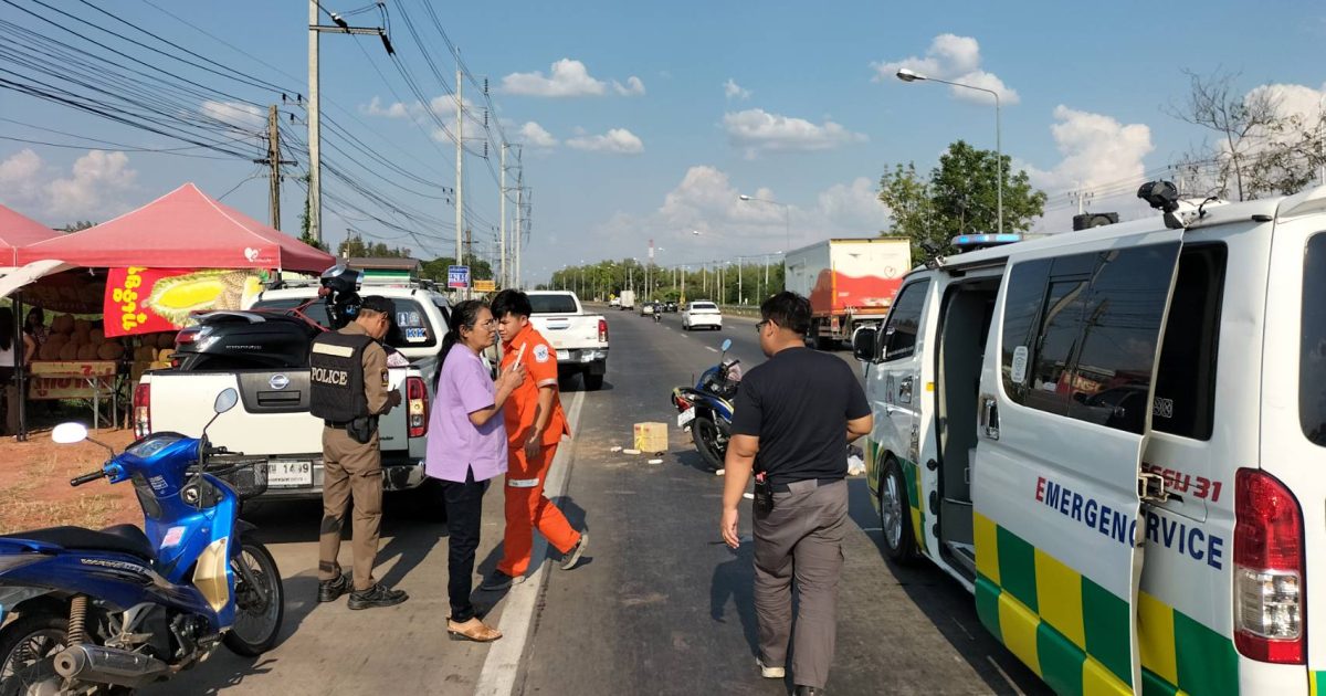 วันที่ 14 มี.ค.2569 เวลา 15.45 น. ร.ต.อ.สันติ เลิศจันทึก รอง สว.(สอบสวน)สภ.เฉลิมพระเกียรติ พนักงานสอบสวนเวร ได้รับแจ้งเหตุอุบัติเหตุรถจักรยานยนต์เฉี่ยวชนกับรถยนต์กระบะ บริเวณถนนมิตรภาพ หมายเลข 2 ต.หนองงูเหลือม อ.เฉลิมพระเกียรติ จ.นครราชสีมา มีผู้ได้รับบาดเจ็บ 1 ราย ได้ประสานเจ้าหน้าที่กู้ภัย ฮุก31 นำผู้บาดเจ็บส่งโรงพยาบาลฯ