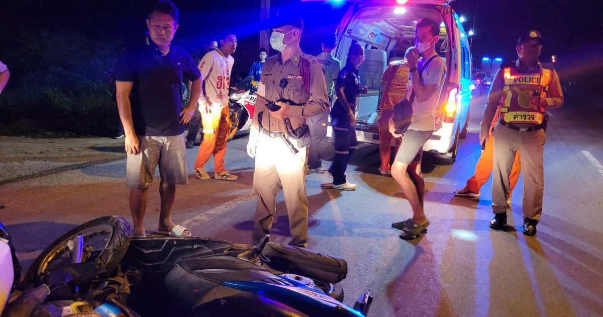 พนักงานสอบสวนเวร ออกตรวจสอบเหตุรถจักรยานยนต์เฉี่ยวชนกับรถยนต์กระบะ