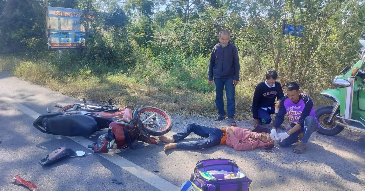 วันที่ 14 ธ.ค.2568 พ.ต.ต. เกรียงไกร สังขันข์ สว.(สอบสวน)สภ.เฉลิมพระเกียตรติ พนักงานสอบสวนเวร ตรวจที่เกิดเหตุ อุบัติเหตุเหตุรถจักรยานยนต์เฉี่ยวชนกัน ที่บ้านหนองยาง ต.หนองยาง อ.เฉลิมพระเกียรติ มีผู้ได้รับบาดเจ็บ 1 ราย ฮุก31 นำส่ง รพ.เฉลิมพระเกียรติ