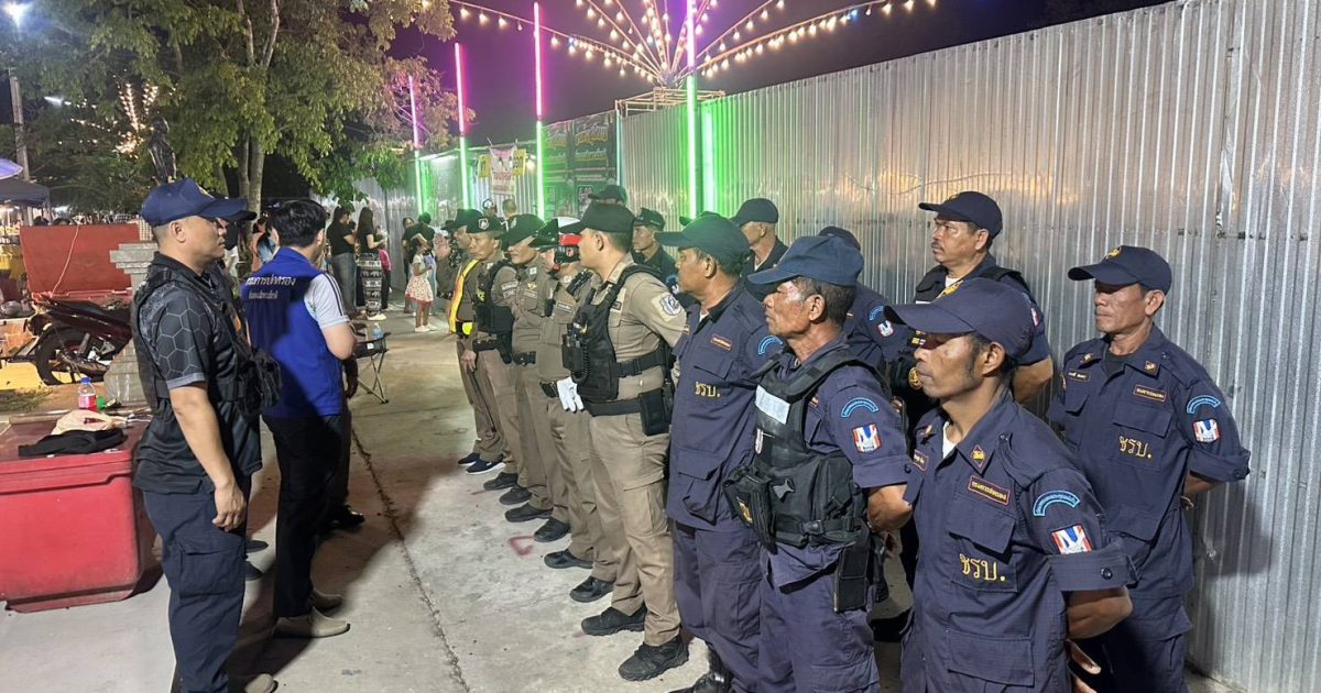 พ.ต.ท.ธงชัย จวนเจริญ รองผกก.ป.สภ.เฉลิมพระเกียรติ พ.ต.ท.สัญญา ด่านโคกสูง สวป.สภ.เฉลิมพระเกียรติ และ นายชัยณรงค์ บัวละคร ปลัดอำเภอเฉลิมพระเกียรติเรียกแถวเจ้าหน้าที่ตำรวจ และชุด ชรบ. รักษาความสงบเรียบร้อย เพื่อชี้แจงเเละเตรียมความพร้อมการปฏิบัติในการรักษาความสงบเรียบร้อยงาน พีธีอนุรักษ์วัฒนธรรมเทิดทูนวีรสตรีท้าวสุรนารี อำเภอ ณ ที่ว่าการเฉลิมพระเกียรติในคืนวันที่ 8 เม.ย. 2569 (มีมหรสพ ประเภทดนตรี)