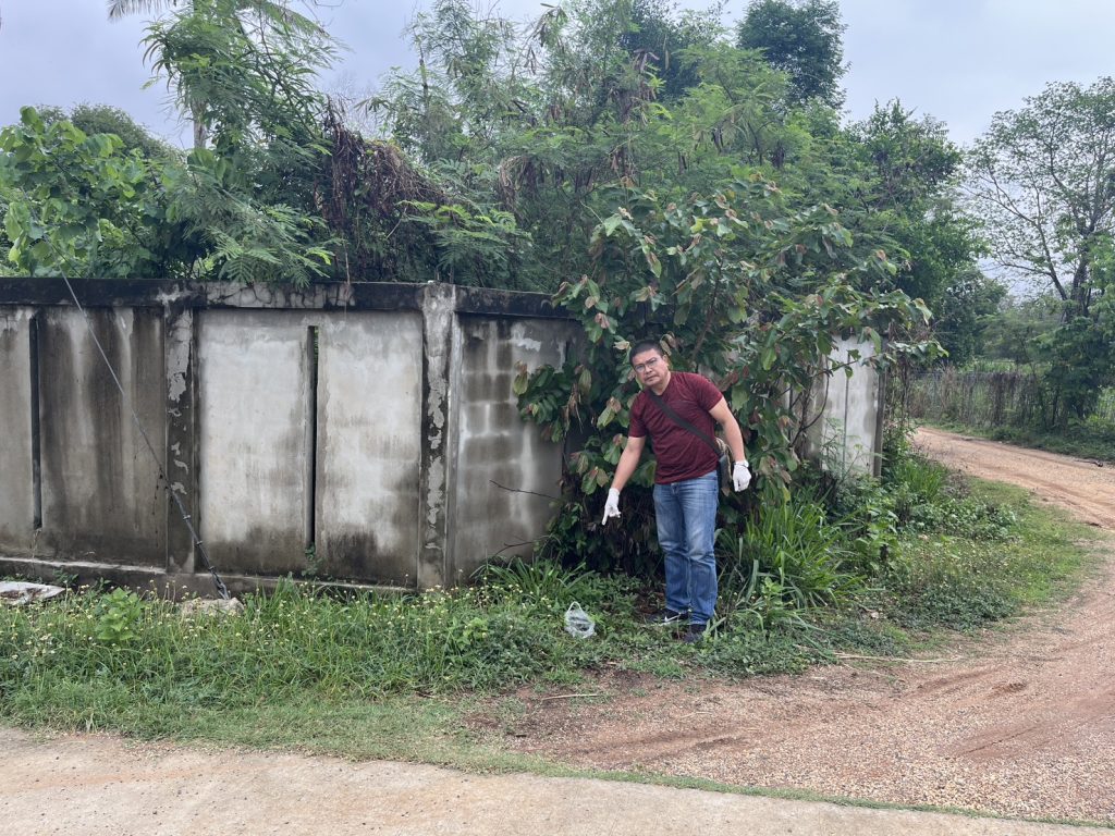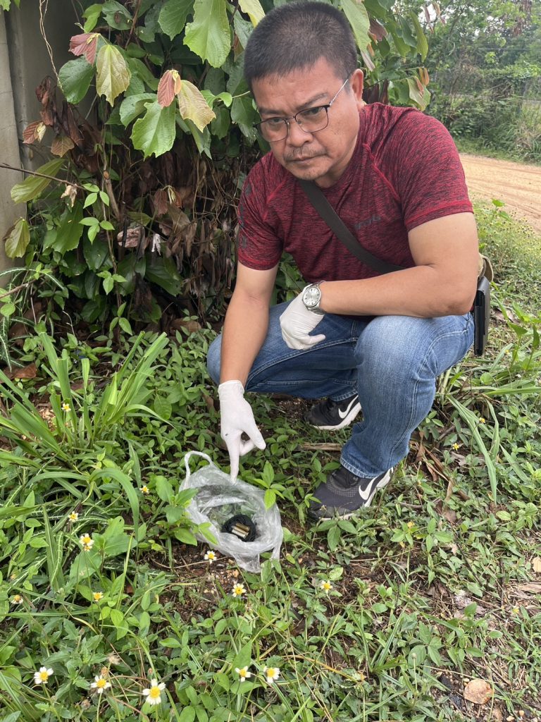 สถานที่ตรวจยึด ที่บริเวณข้างถนน ติดกำแพงด้านหลังโรงเรียนท่าช้างราษฎร์บำรุง หมู่ที่ 5 ต.ช้างทอง อ.เฉลิมพระเกียรติ จว.นครราชสีมา