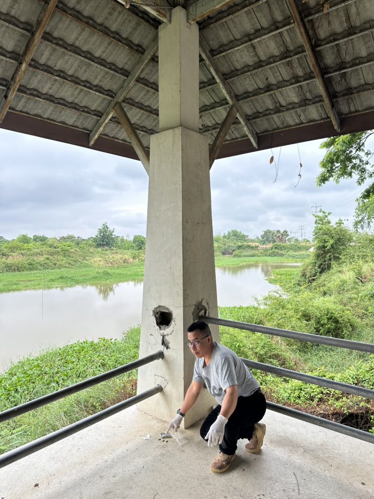 สถานที่ตรวจยึด ที่บริเวณศาลาติดกับแม่น้ำมูลทางด้านทิศตะวันตกของหมู่บ้านโนนไม้แดงใต้ หมู่ที่ 13 ต.ท่าช้าง อ.เฉลิมพระเกียรติ จว.นครราชสีมา