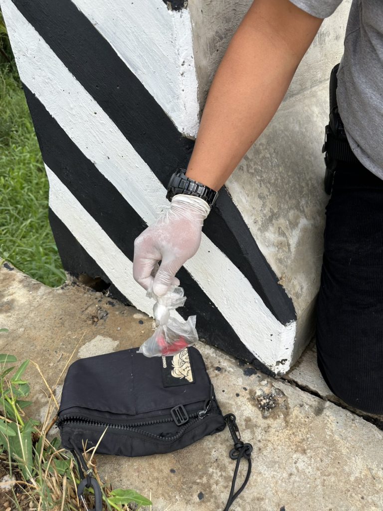 สถานที่ตรวจยึด ที่บริเวณริมถนน คอสะพานข้ามคลองส่งน้ำบ้านพระพุทธ หมู่ที่ 4 ต.พระพุทธ อ.เฉลิมพระเกียรติ จว.นครราชสีมา