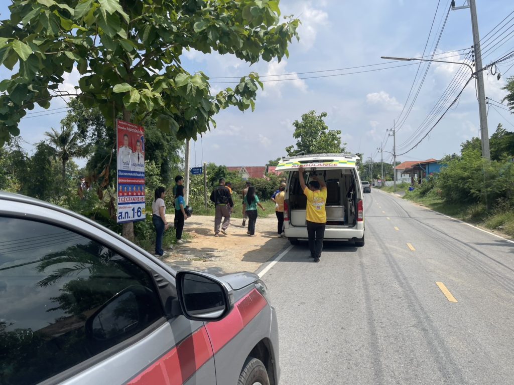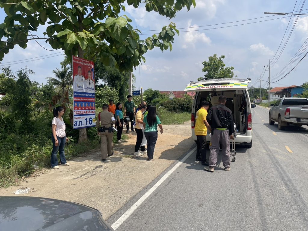 ร.ต.ท.อำนาจ ศิริเมฆา รองสว.(จร ) สายตรวจราจรออกตรวจสอบเหตุ ว.40 อำเภอเฉลิมพระเกียรติ หน้าบ้านกำนัน ต.ท่าช้าง จยย กับ กระบะ ได้รับบาดเจ็บเล็กน้อย