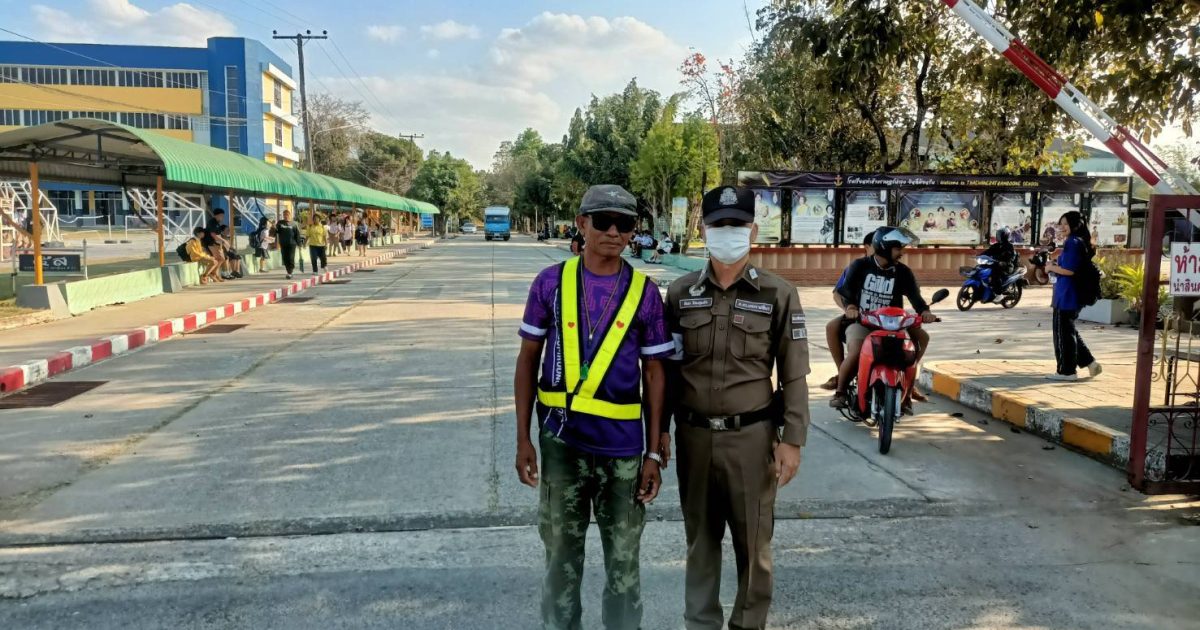 ร.ต.อ.สมร โฮมจุมจัง รองสว.(สส.)ว.4 การจราจรและป้องกันเหตุหน้าโรงเรียนท่าช้างราษฎร์บำรุง ถนน226