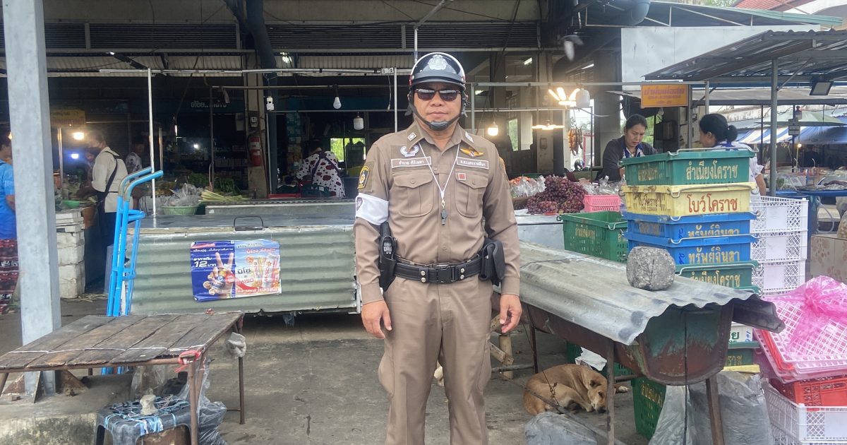 ร.ต.ท.อำนาจ ศิริเมฆา รองสว.(จร ) สายตรวจราจรออกอำนวยความสะดวกการจราจรและป้องกันเหตุในเขตเทศบาลอำเภอเฉลิมพระเกียรติ