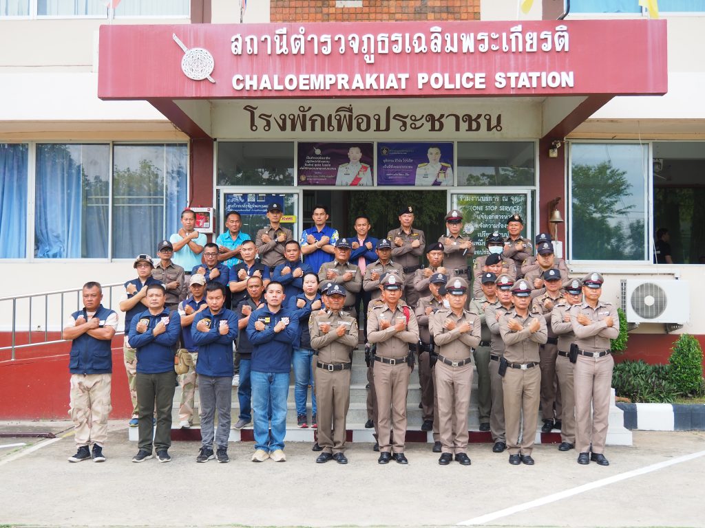 พ.ต.อ.บัณฑิต จาตุวัฒน์ ผกก.สภ.เฉลิมพระเกียรติ นำข้าราชการตำรวจในสังกัด คณะกรรมการ กต.ตร. ร่วมประกาศนโยบายการต่อต้านการรับสินบน ณ ลานด้านหน้า สภ.เฉลิมพระเกียรติ
